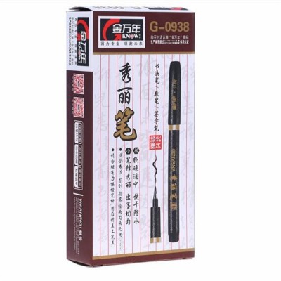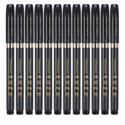 金万年(Genvana)可加墨秀丽笔 毛笔 书法练字笔 软笔 提名签到签名笔 抄经笔 补充液小楷(G-0938)黑色一盒12支 SKU:yzwhyp202383