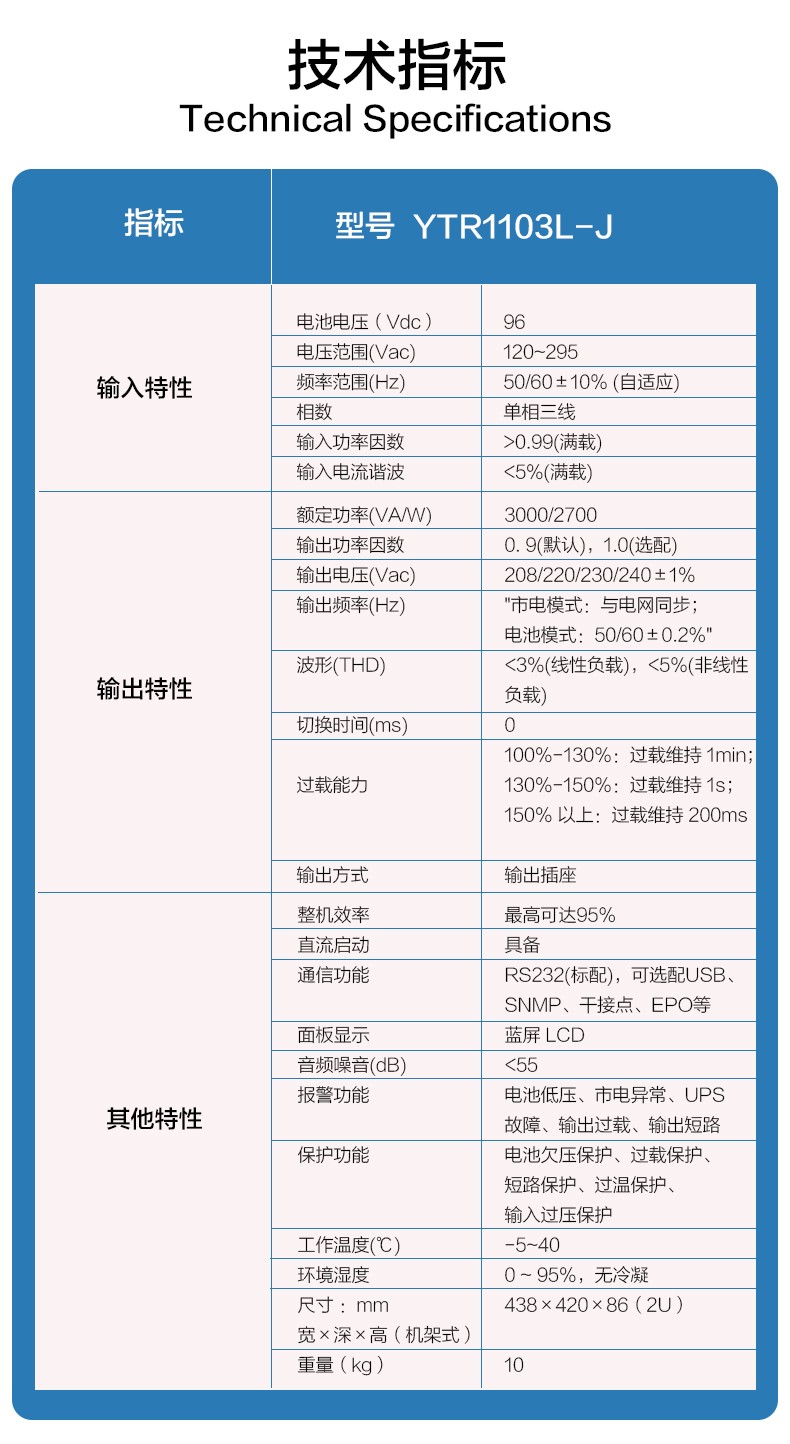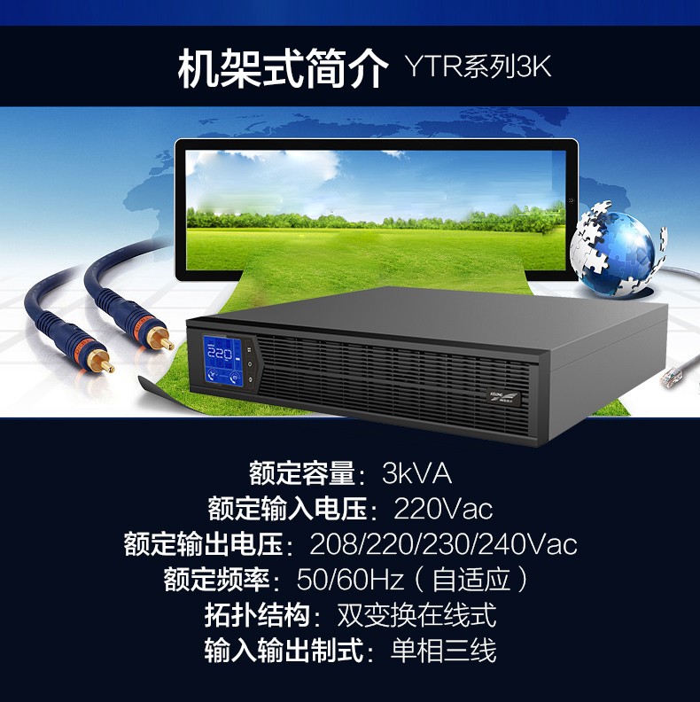 科华UPSYTR1103L-J 3KVA/2700W 机架式 不间断电源 后备30分钟/1h/2h 单机 SKU:yzwhyp105860