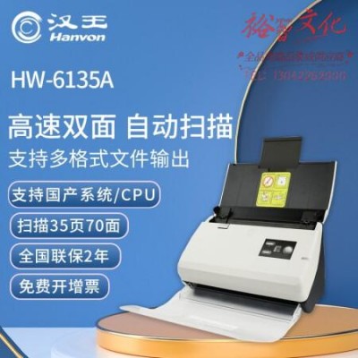 汉王(Hanvon)HW-6135A 馈纸式国产高速档案扫描仪A4幅面 高清高速彩色双面自动馈纸35ppm/70ipm SKU:yzwhyp601483