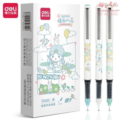 得力S1616潮探直液式走珠笔0.5mm全针管(黑)(支)