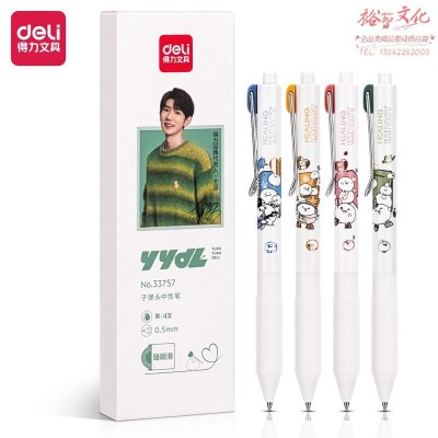 得力33757 源源得力臻顺滑按动学生中性笔0.5mm子弹头(黑)(4支/盒) SKU:yzwhyp106003