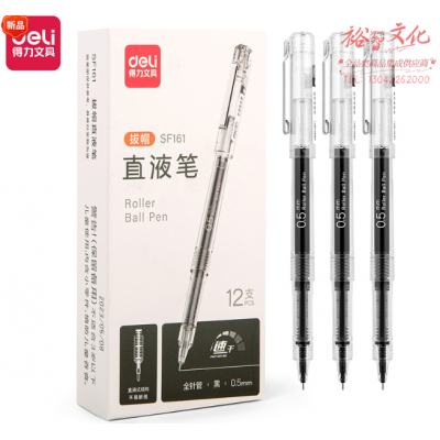 得力(deli)SF161可换芯直液笔0.5mm全针管拔帽速干走珠笔(黑)(12支/盒)(盒) SKU:yzwhyp601639
