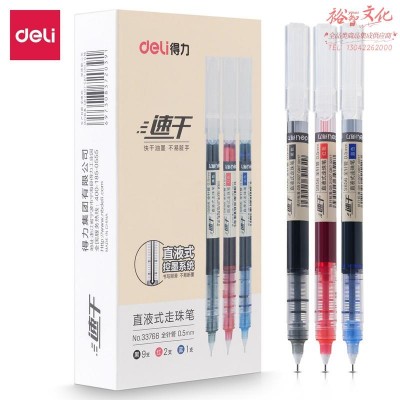 得力(deli)33766速干直液式走珠笔0.5mm全针管9黑2红1蓝(混)(12支/盒)(盒) SKU:yzwhyp601644