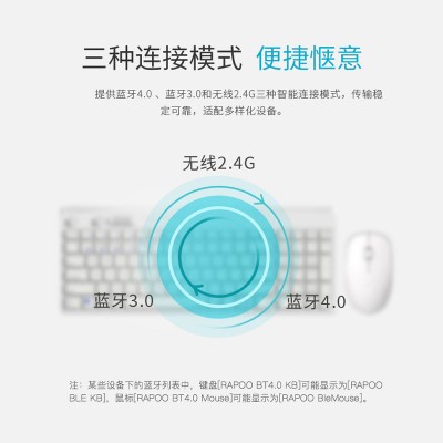 雷柏(Rapoo)无线蓝牙鼠标键盘套装多模式MAC家用办公专用键鼠琦莎 8100M白色 SKU:yzwhyp202463