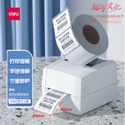 得力(deli)塞纳河60*40mm三防热敏标签打印纸 不干胶打印纸 条码纸 950张/卷 12302(卷) SKU:yzwhyp601689