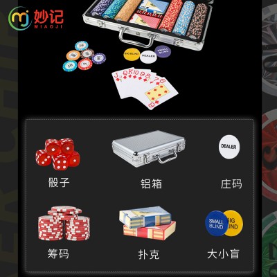 妙记 筹码德州扑克筹码套装扑克麻将代币300片 铝箱 扑克牌2副 MJ8253 SKU:yzwhyp202507