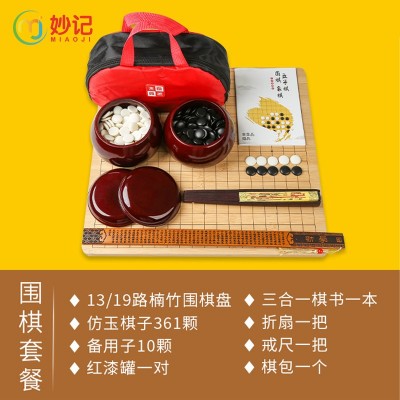 妙记 围棋五子棋套装13路19路竹刻棋盘红漆罐仿玉围棋子MJ8090 SKU:yzwhyp202536