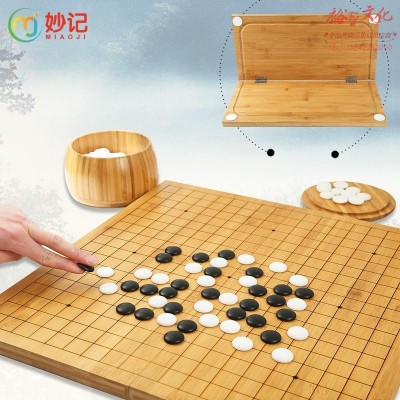妙记 围棋可折叠实木楠竹棋盘套装五子棋易携带楠竹罐棋仿玉棋子19路MJ8071 SKU:yzwhyp202544