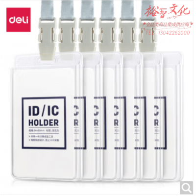 得力(deli)33384透明竖式工作牌证件卡套 带挂绳 6只装 SKU:yzwhyp601929