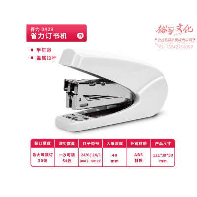 得力(deli)0429 20页省力订书机 适配12#订书钉 白色 SKU:yzwhyp602178