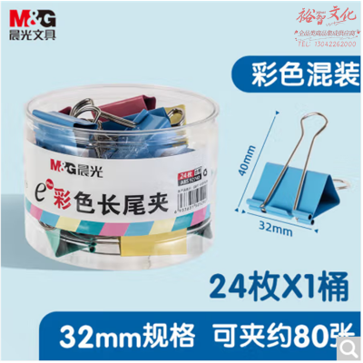 晨光(M&G)ABS916J3 3#32mm 24只/盒 彩色长尾夹 中号 SKU:yzwhyp106659