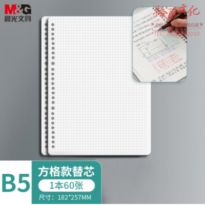 晨光(M&G)APY9E20P-B B5/60张活页本替芯 26孔笔记本活页纸内页 方格单本装 SKU:yzwhyp106824