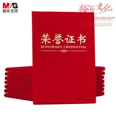 首页 > 办公用品 > 文具 > 晨光(M&G)ASCN9514 12K红色绒面荣誉证书 230*157mm烫金竖式附赠内芯 10本装 SKU:yzwhyp106866