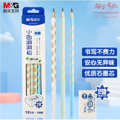 晨光(M&G)AWP30757 HB小白洞洞铅笔 三角木杆 内含橡皮 12支/盒装 SKU:yzwhyp106906