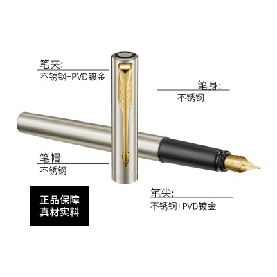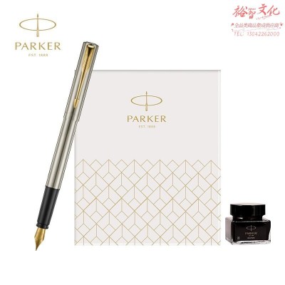 派克(PARKER)钢笔 签字笔 商务办公送礼 男女生日礼物 学生练字 威雅XL钢杆金夹墨水笔+浅灰迷你墨水礼盒 SKU:yzwhyp203012