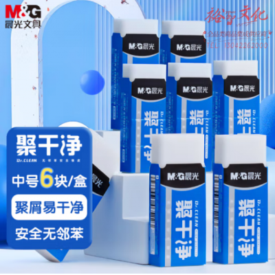 晨光(M&G)AXP963HX 聚干净中号橡皮擦 6块/盒装 SKU:yzwhyp107058