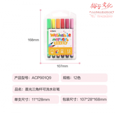 晨光(M&G)ACP901Q9 12色三角杆水彩笔 可水洗(盒) SKU:yzwhyp602846