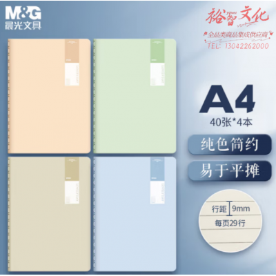晨光(M&G)FA4414 A4/40张加厚缝线 横线米黄内页 透染系列4本装 SKU:yzwhyp107513