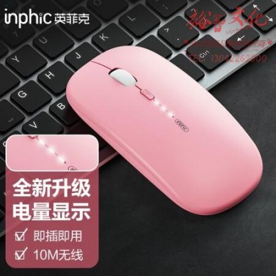 英菲克(INPHIC)PM1二代可充电无线鼠标【电量显示增强版】办公轻音 笔记本电脑家用2.4G 超薄便携 樱花粉 SKU:yzwhyp107792