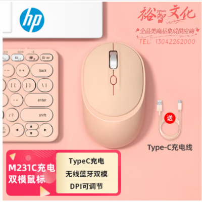 惠普(HP)鼠标M231C无线蓝牙双模可充电鼠标 蓝牙5.0/4.0 便携办公鼠标 多模切换智能休眠手感舒适 奶茶粉 SKU:yzwhyp108155