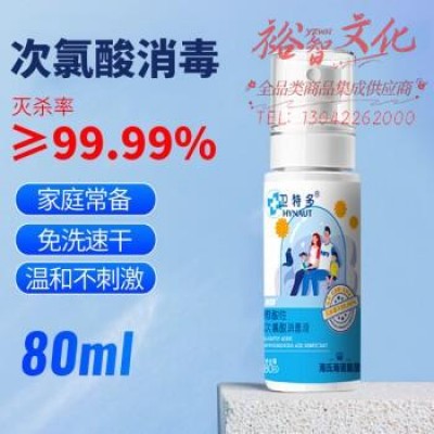 首页 > 建筑建材 > 其他防护用品 > 海氏海诺卫特多 次氯酸消毒液80ml 免洗消毒喷雾 SKU:yzwhyp108192