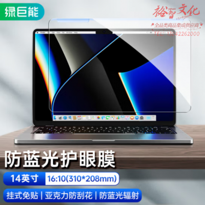 绿巨能(llano)电脑显示器防蓝光保护屏 护眼膜14英寸16:10 310*208mm SKU:yzwhyp315602