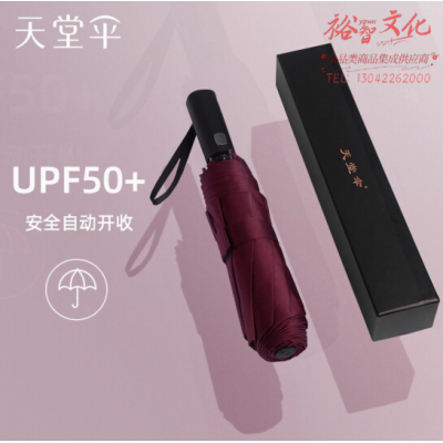 天堂伞 晴雨伞黑胶防晒遮阳 升级安全自动开收 酱红 60CM*8骨 SKU:yzwhyp315784