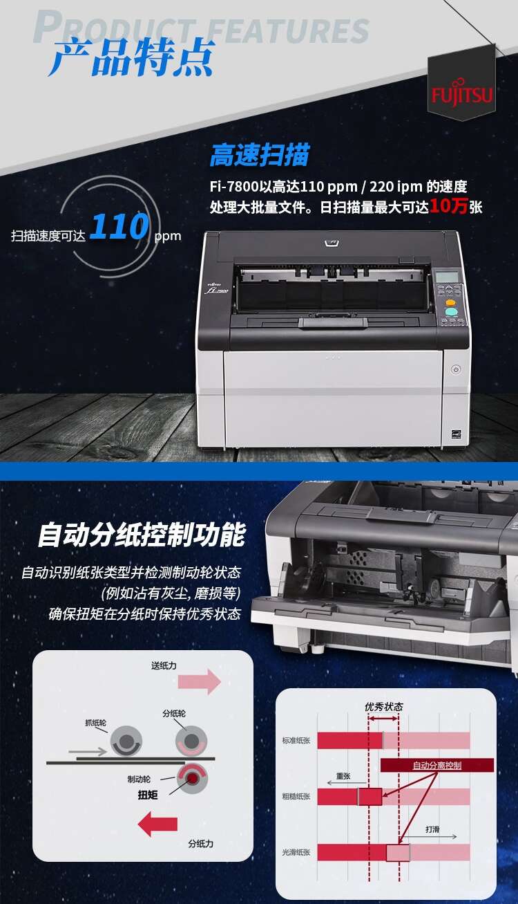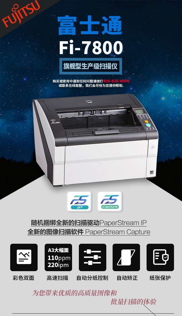 富士通Fi-7800 A3高速彩色双面 自动进纸旗舰型生产级扫描仪 Fi-7800 SKU:yzwhyp108509