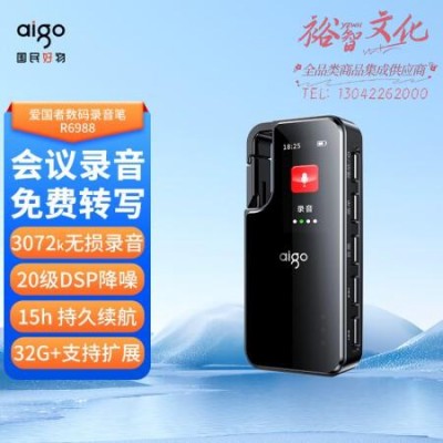 爱国者R6988 32G录音笔 一键录音智能商务录音器专业录音 高清降噪录音笔 学习会议采访 黑色 SKU:yzwhyp108555