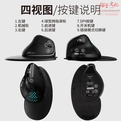 多彩(DeLUX) M618XSU 人体工学鼠标 垂直鼠标 有线鼠标 商务办公 USB接口即插即用 笔记本台式机鼠标 黑色 SKU:yzwhyp203293