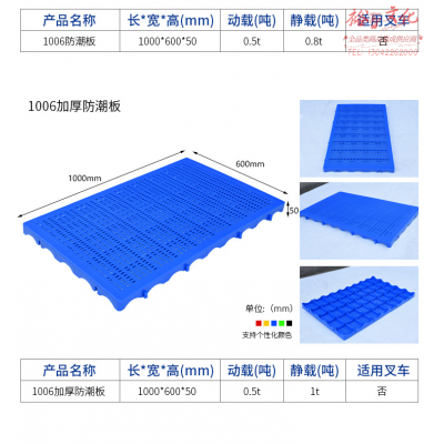 塑料托盘1006加厚防潮板叉车仓库 货物防潮栈板1000*600*50MM SKU:yzwhyp316012