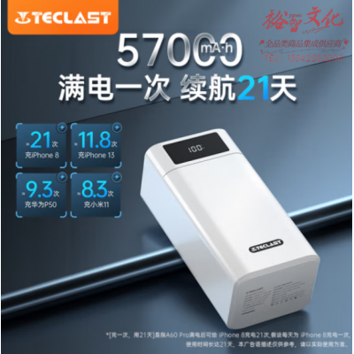 首页 > 电气设备 > 蓄电池及充电装置 > 台电(TECLAST)57000毫安时大容量移动电源 22.5W双向快充充电宝PD20W 适用于苹果安卓华为小米 白色A60 Pro-W SKU:yzwhyp316180