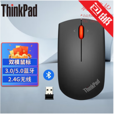 ThinkPad 小黑红点无线鼠标 笔记本电脑办公蓝光鼠标 无线蓝牙双模鼠标(石墨黑) SKU:yzwhyp108875