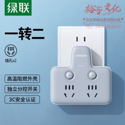 绿联CD329 插座转换器 多功能转换插头/品字形一转二插座/无线转换插座/电源转换器 一转多插座扩展 2位分控插座 SKU:yzwhyp317808