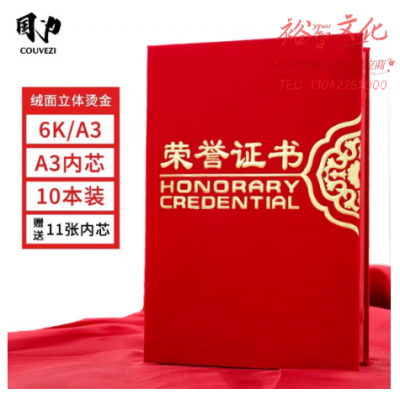 首页 > 办公用品 > 文具 > 国为(COUVEZI)【10本装】可定制荣誉证书外壳红色绒面颁奖奖状 太阳花6k 10本(配内芯) SKU:yzwhyp317918