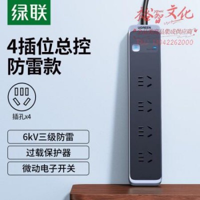 绿联CD338 防雷排插座拖线板多功能家用抗电涌面板多孔插位宿舍用 4位5孔 线长1.8米 全长2米 SKU:yzwhyp317951