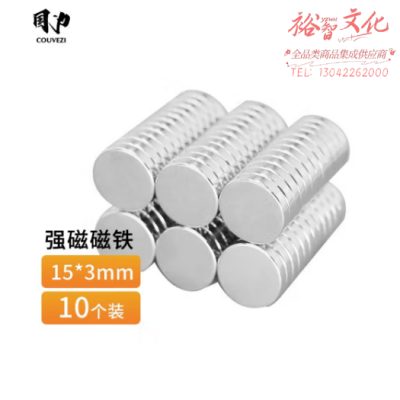国为(COUVEZI) 圆形强力磁铁/磁片/高强度钕铁硼小磁石/教学白板小磁铁片强磁铁 吸铁石 15*3mm(10个装 SKU:yzwhyp317992
