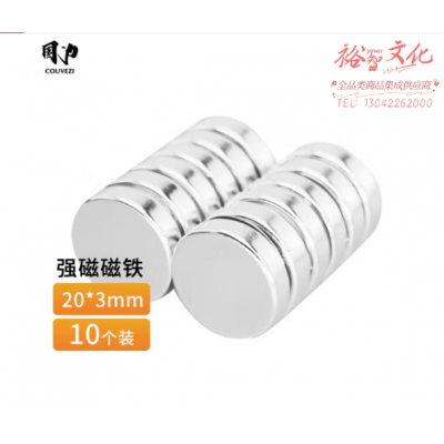 国为(COUVEZI) 圆形强力磁铁/磁片/高强度钕铁硼小磁石/教学白板小磁铁片强磁铁 吸铁石 20*3mm(10个装) SKU:yzwhyp317993