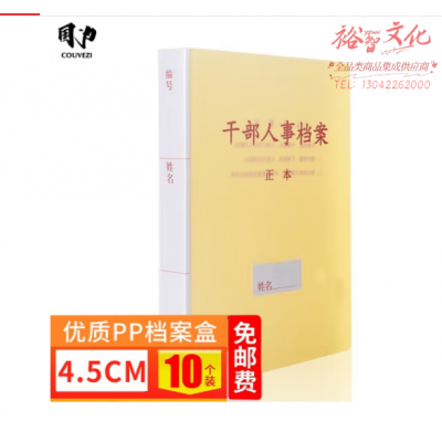 首页 > 办公用品 > 文具 > 国为(COUVEZI) 10个装 干部人事档案盒 A4新标准 员工/职工/党员档案盒可定制 优选PP档案盒-4.5cm 10个装 SKU:yzwhyp318164