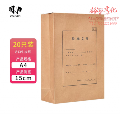 国为(COUVEZI) A4投标文件袋 牛皮纸加厚标书袋 档案袋 资料袋 办公用品 20个装封条 投标文件袋侧宽15cm 20个装 SKU:yzwhyp318183