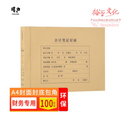 国为(COUVEZI) 10个装A4凭证盒加厚牛卡纸记账凭证纸会计档案装订盒横版竖版单封口 A4封面封底包角 100套 SKU:yzwhyp318244