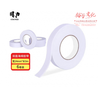 首页 > 办公用品 > 文具 > 国为(COUVEZI) 双面海绵胶带泡沫泡棉胶布/泡沫双面胶办公文具 24mm*3m 6卷装 SKU:yzwhyp318260