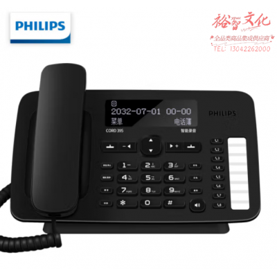 首页 > 通信设备 > 普通电话机(不包含移动电话) > 飞利浦(PHILIPS)CORD395录音电话机 固定座机 办公家用 自动 手动录音2700小时 可存1000组中文电话本 黑色 SKU:yzwhyp110049