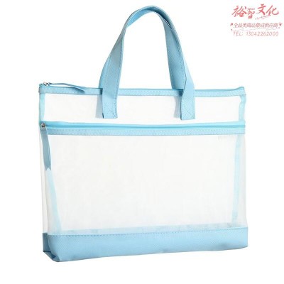 康百 双层网纱手提袋简约透明文件袋拉链袋学生作业袋办公资料收纳袋文具袋 颜色随机-A4-横式 F6734 SKU:yzwhyp203576