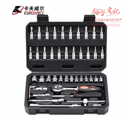 卡夫威尔 汽修工具箱套装 随车汽车套筒扳手组套 72齿小飞6.3mm 铬钒钢快速拆卸棘轮扳手 46件套 SS046A01 SKU:yzwhyp318678