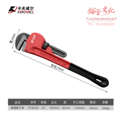 卡夫威尔 重型管钳大开口水管扳手活口管子水泵手虎钳18寸 PC4022S SKU:yzwhyp318879