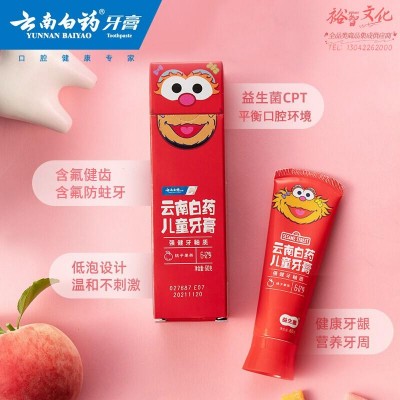 云南白药牙膏 益生菌儿童牙膏60g 固齿强健牙釉质6-12岁 桃子果茶味 SKU:yzwhyp318952