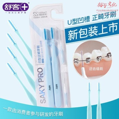 舒客正畸U型凹槽专用软毛牙刷 蓝色2支装 SKU:yzwhyp318965