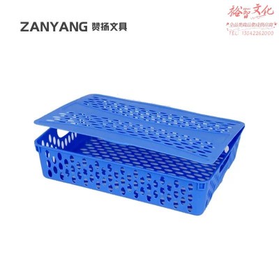 赞扬 资料收纳框A4多功能杂物整理收纳篮盒分类储物镂空蓝色带盖 SKU:yzwhyp203723