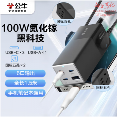 公牛 氮化镓100W充电器快充笔记本插座 USB(3C1A)+2插孔 全长1.5米 GNV-MC1102 SKU:yzwhyp320578